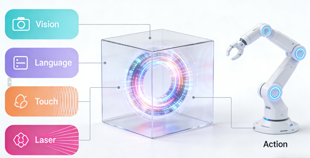 VTLA-3D在此之上,加入了3D激光点云信息和触觉感知(Touch),多了两个维度的信息通道,3D点云则解决了普通2D图像对深度和距离判断不够准确的问题,让机器人对空间的理解从"平面"升级到"立体";触觉解决了灵巧手“用多大劲”的问题——抓纸盒和抓铁块力度肯定不一样,这在日常高频的抓取中作用非常大。