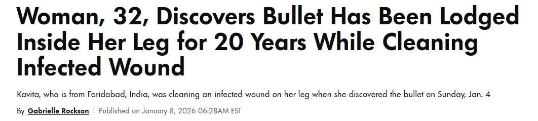 https://people.com/woman-discovers-bullet-been-inside-leg-20-years-while-cleaning-infected-wound-11881335