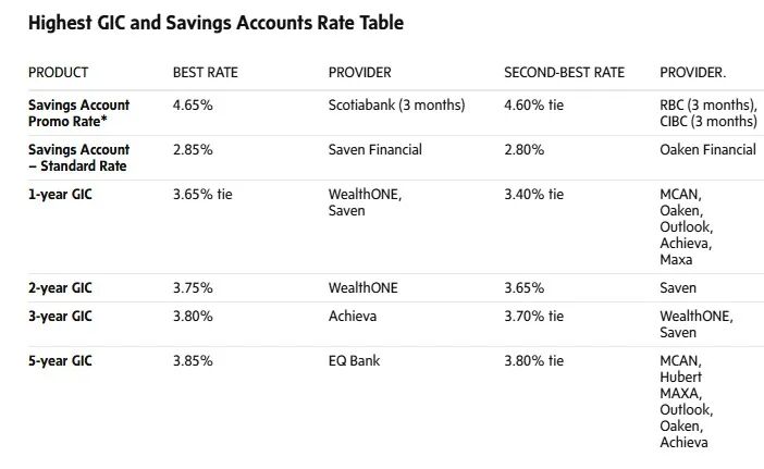 目前市场上最具吸引力的促销储蓄利率来自 丰业银行(Scotiabank)Momentum Plus 账户,三个月促销利率高达 4.65%,但促销期结束后利率通常会大幅下降。