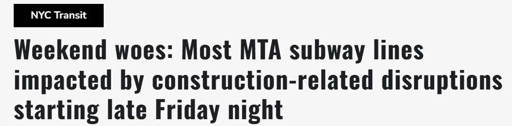 根据纽约大都会运输局(MTA)的消息,本周末纽约市5个区的通勤者将面临大范围的地铁服务变更。(来源:哥谭派报道截图)