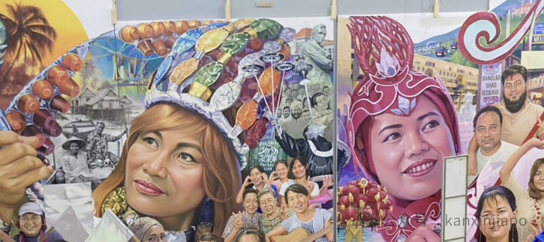 像作品《SINGAPORAMA》|Navin Rawanchaikul(泰国),通过巨幅“老电影海报”风格画作与影像访谈,呈现移民、文化、信仰与城市生活交织的新加坡群像。