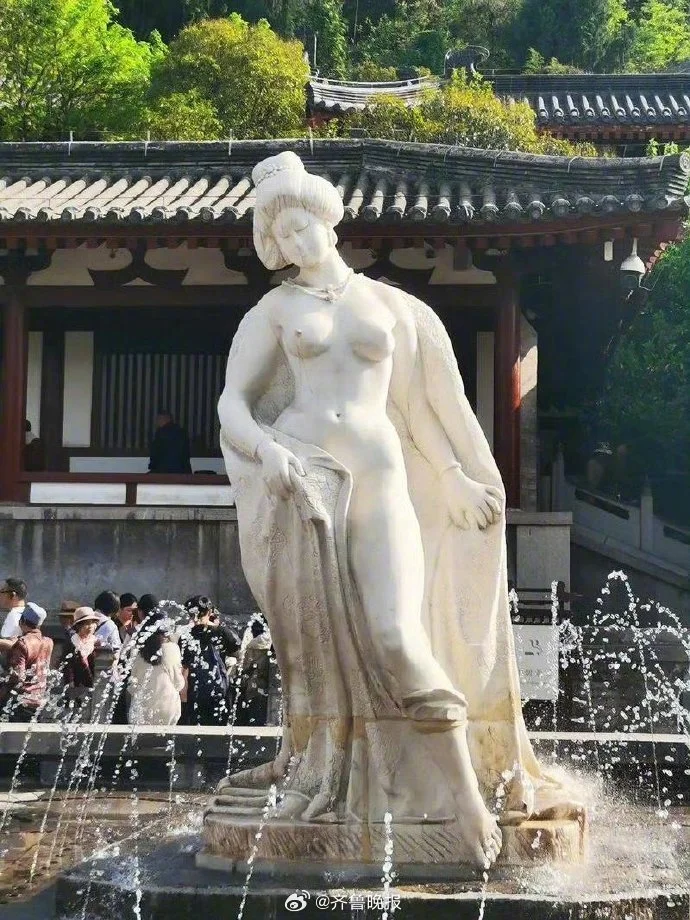 近日,多名网友发帖称,西安临潼华清池景区内的“贵妃出浴”雕像因袒露上半身,存在“不雅观”“败坏社会风气”等问题。相关帖子发布后,迅速引发数万网友关注和热议,部分网友认同上述观点,认为雕像衣不蔽体,有损杨贵妃的古典形象。