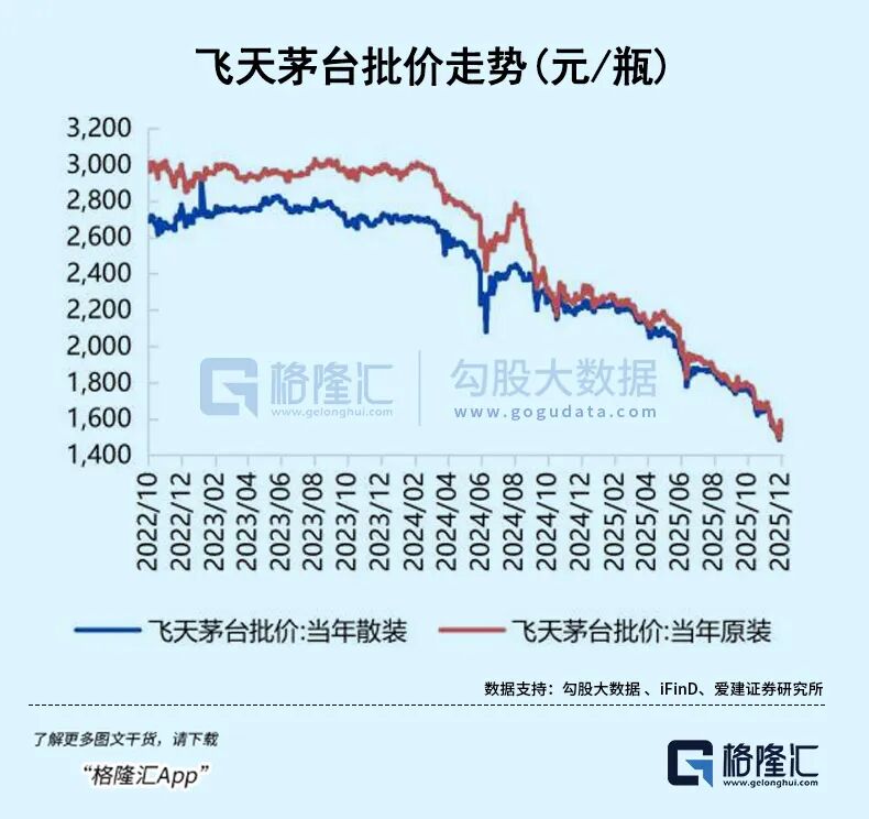 飞天茅台在i茅台上开售后,其市场批发价一路下跌,一度跌破官方指导价。