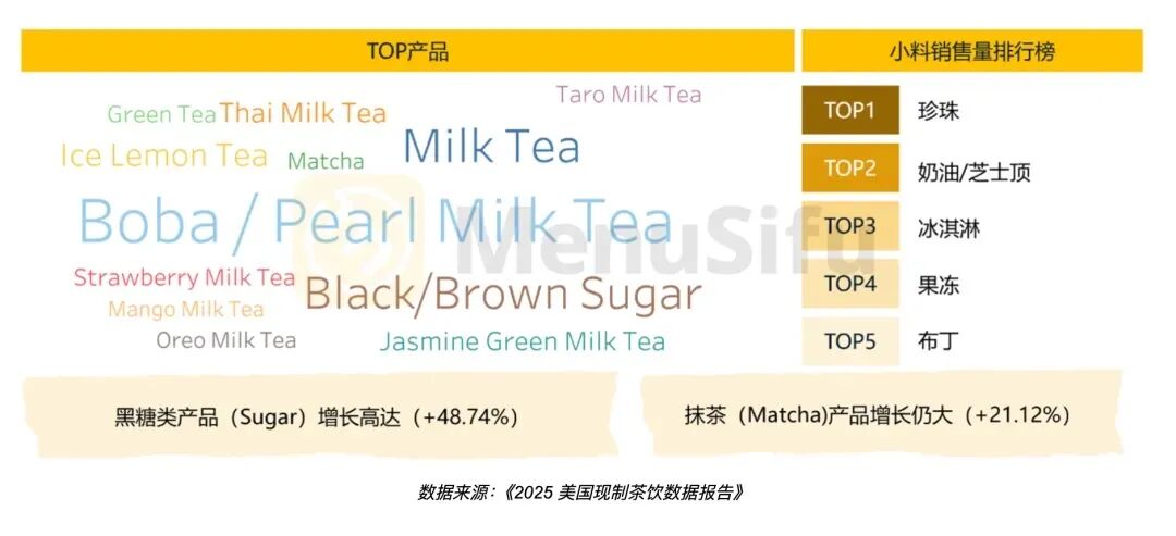 但这事儿非常困难,美国人的饮品习惯已经根深蒂固,他们平时喝的最多的是咖啡、可乐、甜冰茶,对茶的认知和口味偏好和我们完全不同。《报告》指出,2024年,美国奶茶市场的黑糖类产品销量飙升48.7%,抹茶奶茶增长21.1%。跟中国消费者比起来,美国消费者更喜欢“齁甜”口味的奶茶。