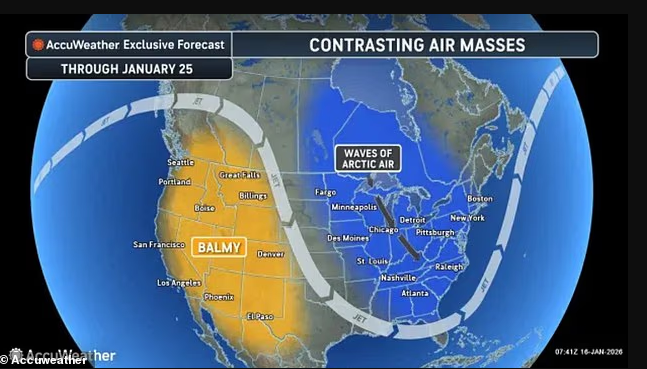 一股规模巨大的极地涡旋(Polar Vortex)正在重新席卷美国,气象部门警告称,这轮寒潮或将让美国近一半地区在整个1月剩余时间里持续处于“深度冻结”状态。气象学家指出,来自加拿大的极寒空气正大规模南下,多地气温预计将比1月历史平均值低出多达20华氏度(约11摄氏度)。包括芝加哥、纽约在内的多座大城市,都将遭遇异常严寒。根据AccuWeather的预报,这一轮冬季寒潮至少会持续到1月25日,而极地涡旋的影响最严重情况下可能持续长达14天。