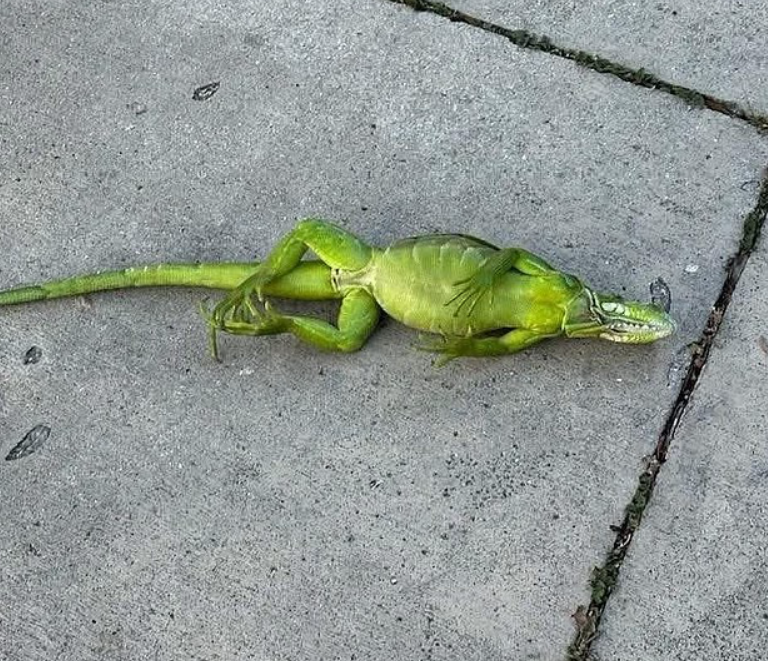 在佛州,低温还触发了当地著名的“坠落鬣蜥(falling iguana)”现象。