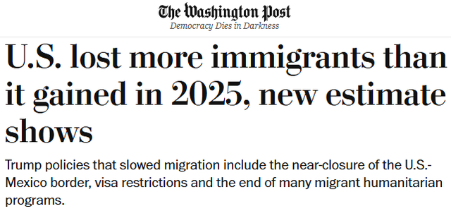 研究人员表示,美国在2026年还将继续出现“移民流出大于流入”的趋势,并将对经济和人口增长带来长期影响。
