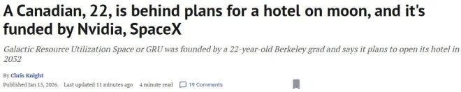 他的创业项目已获得SpaceX等机构的支持,同时也进入了Nvidia的Inception创业孵化计划。当然,项目未来的资金来源还包括潜在的“月球酒店住客”。