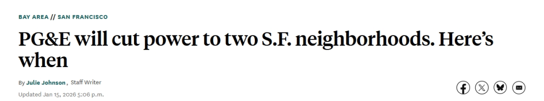 PG&E周四宣布,下周将暂时切断旧金山两个社区的电力供应,公司正准备恢复上个月因火灾导致大范围停电的Mission变电站的供电。(图源:旧金山纪事报报道截图)