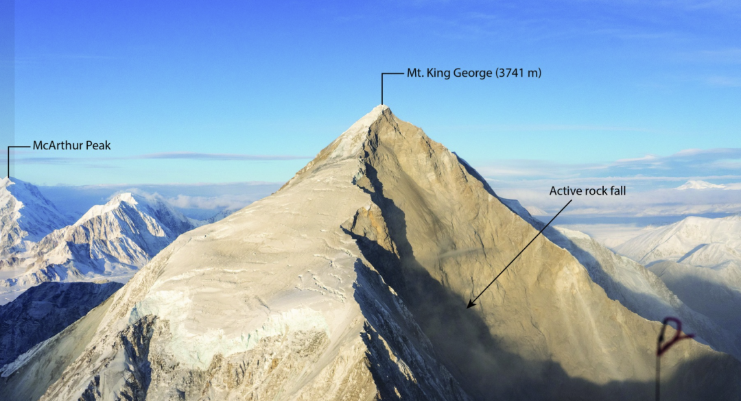 震后数周,育空地质调查局就派出直升机,对偏远山区进行空中勘察,结果在克卢恩国家公园、靠近乔治王山一带发现了两处山体滑坡和大面积雪崩痕迹。