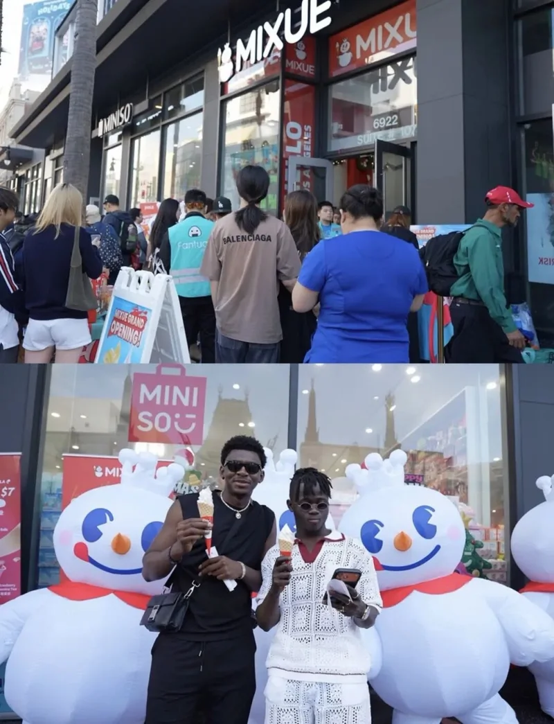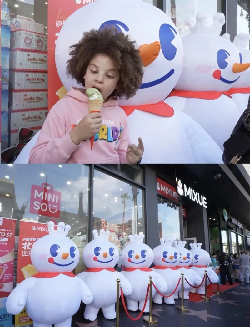 中国雪王正乘着互联网上的热度蓬勃发展。为了庆祝其洛杉矶和纽约地狱厨房和韩国城的开业,蜜雪冰城推出了一项特别活动: