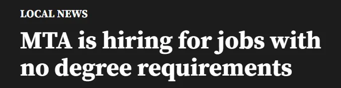 纽约大都会运输局(MTA)正在招聘多个无需大学学位的职位,其中部分岗位的年薪范围甚至超过了10万美元。