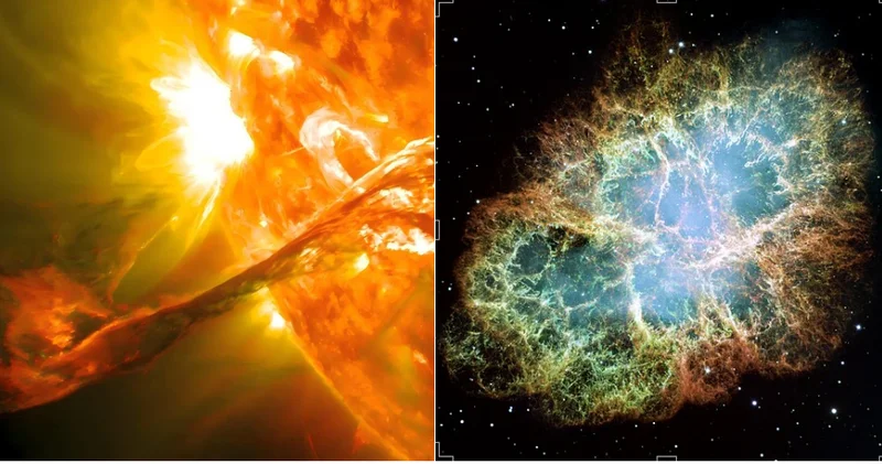 左:日冕物质抛射 右:超新星爆发后残存的蟹状星云|newscientist