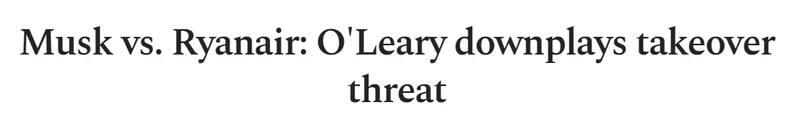 这场口水战的最新高潮是,“抠门”总裁奥利里在周三专门开了场新闻发布会,公开嘲讽马斯克:“你要是能买下瑞安航空,那可比你投资X(原推特)划算多了!”