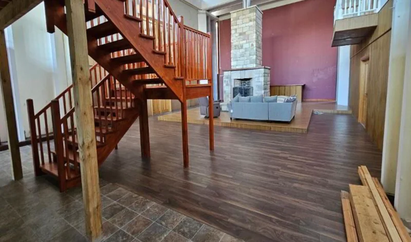 这栋建筑建于1976年,是Kiltubrid教区在天主教爱尔兰在梵蒂冈第二次大公会议后,各地教区热衷兴建新教堂时期的产物。教友们当年可是掏空口袋才凑钱建起了它。建筑风格相当现代,整体呈十字形,从主脊延伸出三个翼楼。最震撼的是中央区域,那是一个层高超过5米的超大空间,如今还装点着一个手工石制大壁炉,既适合聚会,也能办点活动,气派不减当年。不过,真正让它从“圣所”变身“豪宅”的,是那三个翼楼里的乾坤。里面被改造成了复式住宅空间,共有四个单元,其中两个已近乎完工,两个还在装修。