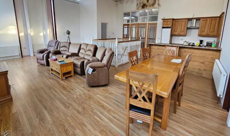 目前已有两个单元有人入住。整栋房产总计规划(或已配备)了2个厨房、7间卧室和5个卫生间,生活设施一应俱全。更绝的是,这房子的每个部分都有独立的Eircode(总共4个),还接入了三套独立的电力供应系统,简直像个自成一格的小社区。它总面积约8200平方英尺,坐落在1.3英亩的土地上,面向公共道路,紧邻村里主干道。