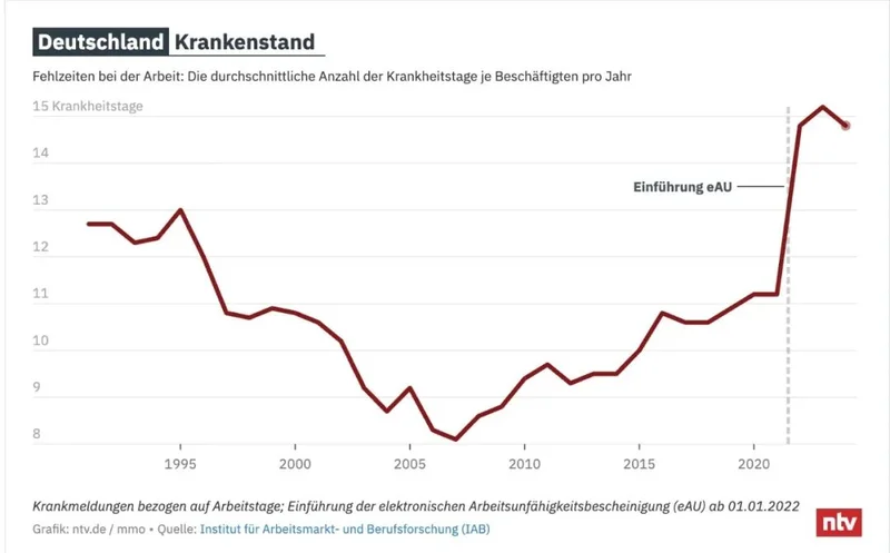 值得注意的是,这些数字本身并不能简单等同于“人们变得更不健康”。专家普遍认为,近年来病假数据上升,最重要的原因在于统计方式发生了变化。自2022年起,电子病假证明(eAU)全面推行,医生会直接将病假信息发送给医保机构,尤其是短期病假不再像过去那样容易“消失”在统计之外。社会学家斯特凡·泽尔指出,以前纸质病假条常常未被提交或登记,“并不是人突然病得更多了,而是现在记录得更完整了”。