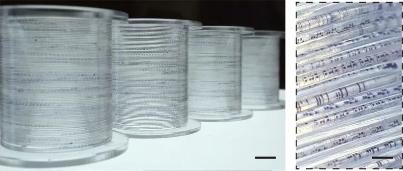 成卷“纤维芯片”和局部细节。受访团队供图成卷“纤维芯片”和局部细节。受访团队供图