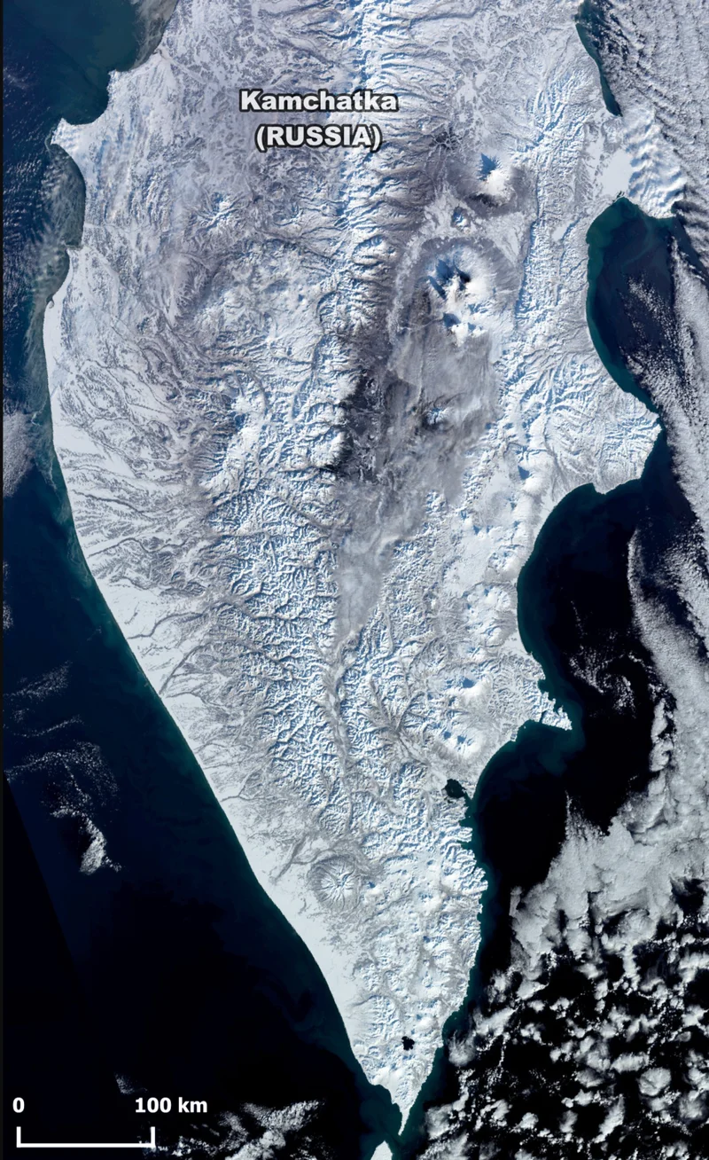 1月17日,从卫星上俯瞰堪察加半岛▼