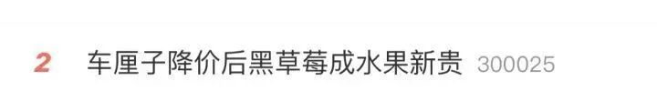 有媒体称:车厘子大降价的同时,“黑草莓”成了“水果新贵”,一斤黑草莓甚至卖到了三百元以上。