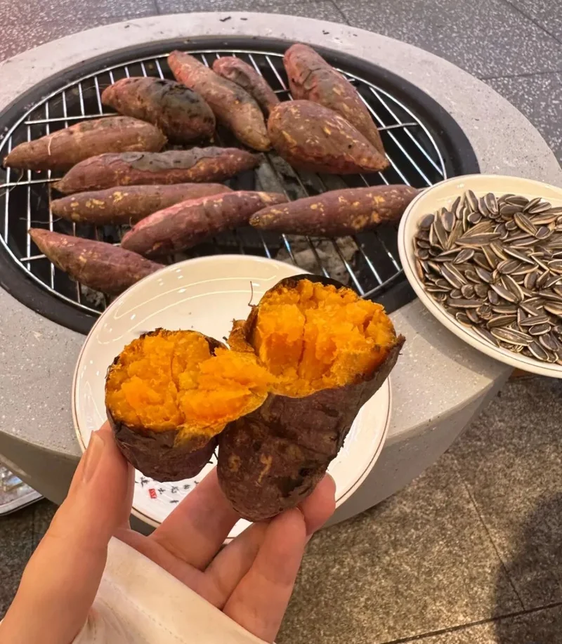 让小罗震惊的是,上次去了一家等位区在户外的餐厅,门口甚至会直接给大家安排围炉烤地瓜,又能暖手又能垫垫肚子。“两个地瓜下肚感觉已经吃饱了,再喝点小果汁顺一顺,直接吃上下午茶。”