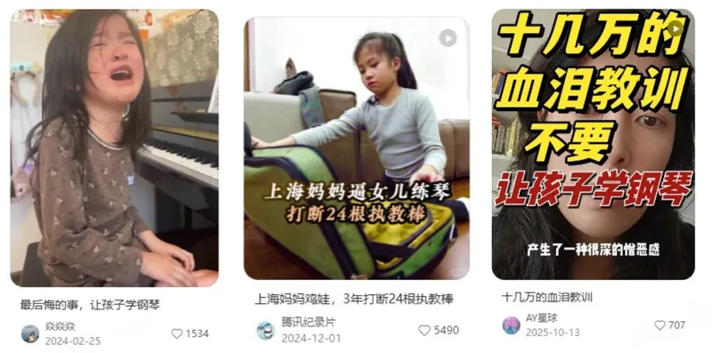 孩子痛哭流涕,家长十几万打水漂“燃尽了”,练琴堪称双向奔赴的折磨,社交媒体上可以广泛看到关于学琴的痛苦案例/图源小红书