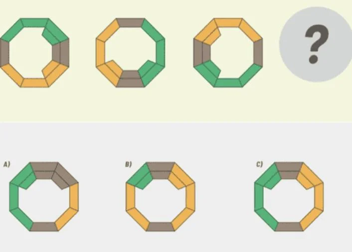 (正确答案:B)在Gemini的推理过程中,它首先将形状转化为文字描述,再简化为粗略特征(如数量、拓扑结构),然后在语言空间中对比候选选项。