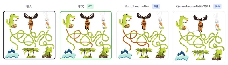 这里的失误也表明:单纯的生成能力并不等同于严密的推理,生成过程还必须由稳健的视觉语义理解(Visual Understanding)进行引导。