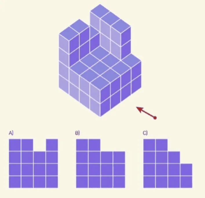 举例来说:给你一个视图,让你想象如果从侧面看,它应该是什么样子。