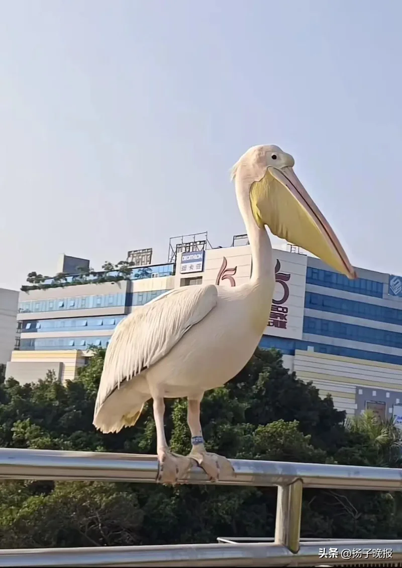 近日,广东一网友一条视频引发关注。视频中,一只鹈鹕站在大桥的护栏上“左顾右盼”,地上还有一条鱼。