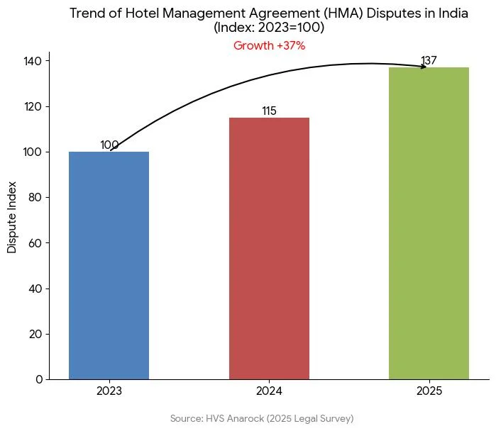 根据印度权威咨询机构HVS Anarock在2025年底发布的一份法务调研报告,随着这波签约潮爆发,涉及国际酒店品牌的管理合同纠纷(HMA Disputes),在过去两年内激增了37%。