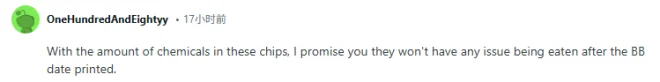 “就这些薯片里的成分来看,我保证即使过了最佳食用日期,吃了也不会有任何问题。”