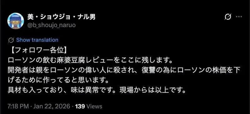 日本人之所抢空了“喝的麻婆豆腐”,就是为了“试毒”或发帖吐槽,所以销量才逆势走高。