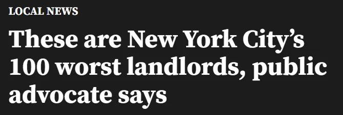 据PIX11 1月21日报道 在纽约这座租客怨声载道的城市中,总有一些房东被称为“恶霸中的恶霸”。本周三,纽约市公益维护人Jumaane Williams发布了年度“纽约市100名最差房东”榜单。
