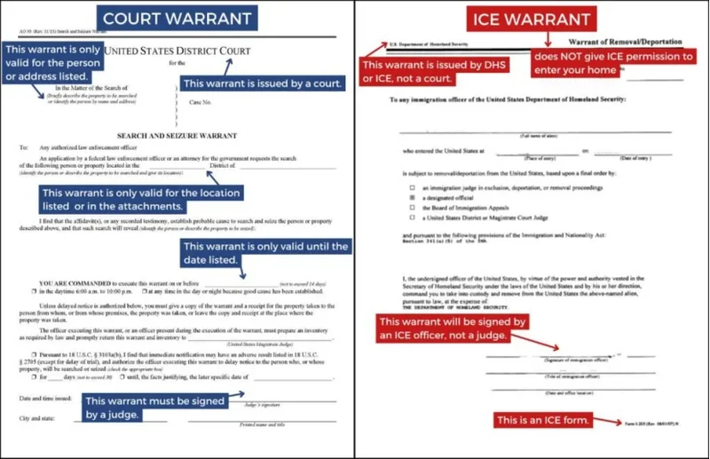 多年来,无论是移民权益组织、法律援助机构还是地方政府一直呼吁民众,除非移民执法人员出示由法官签署的搜查令,否则不要开门。这一建议源自美国最高法院的判例,旨在保护公民隐私不被行政权力随意践踏。