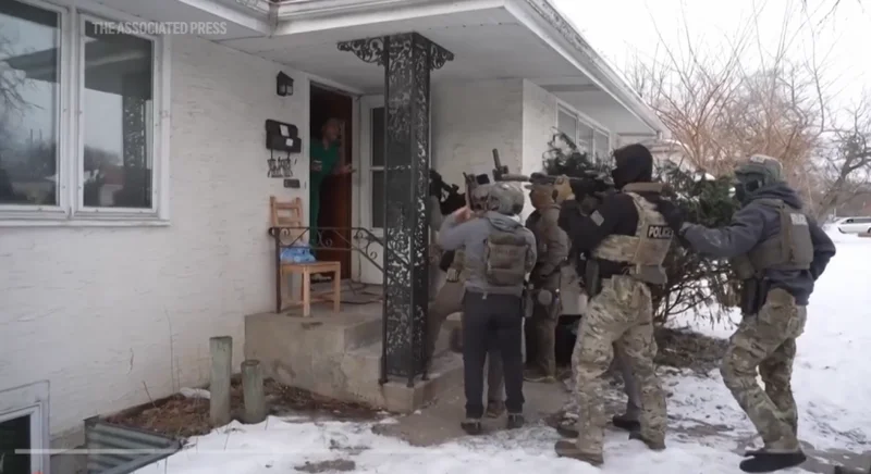 图中为1月11日,在明尼阿波利斯,ICE闯入了一名利比里亚男子加里森·吉布森的家中,他持有一份2023年的驱逐令。图源:APNews.com
