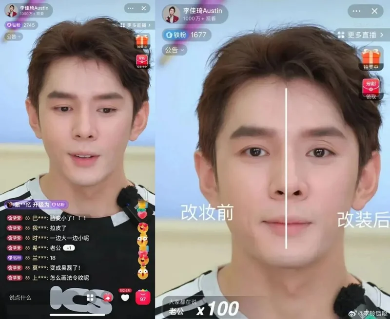同一套玩法在直播间同样适用。李佳琦六小时试色189支口红打响一哥名号,2023年毛戈平本人去一次李佳琦直播间,大半围观群众都想给他在线寄头。