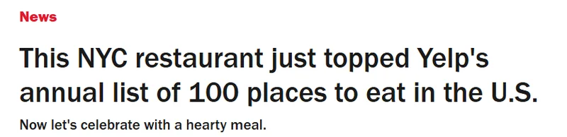 据Time Out 1月22日报道 在新发布的Yelp 2026年度“全美百佳餐厅”榜单中,纽约不仅大放异彩,更是直接包揽了全美第一名的宝座。