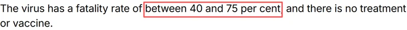 图源:Globaltimes.com尼帕病毒的致死率高达40%至75%,远高于新冠病毒。