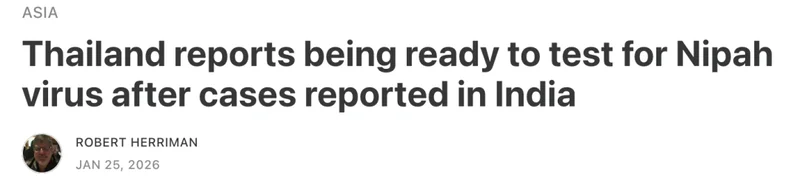 近日,印度卫生官员正紧急应对尼帕(Nipah)病毒疫情,该病毒在人口第三大城市加尔各答(Kolkata)的西孟加拉邦(West Bengal)已确诊5例,其中一名护士病情危重。