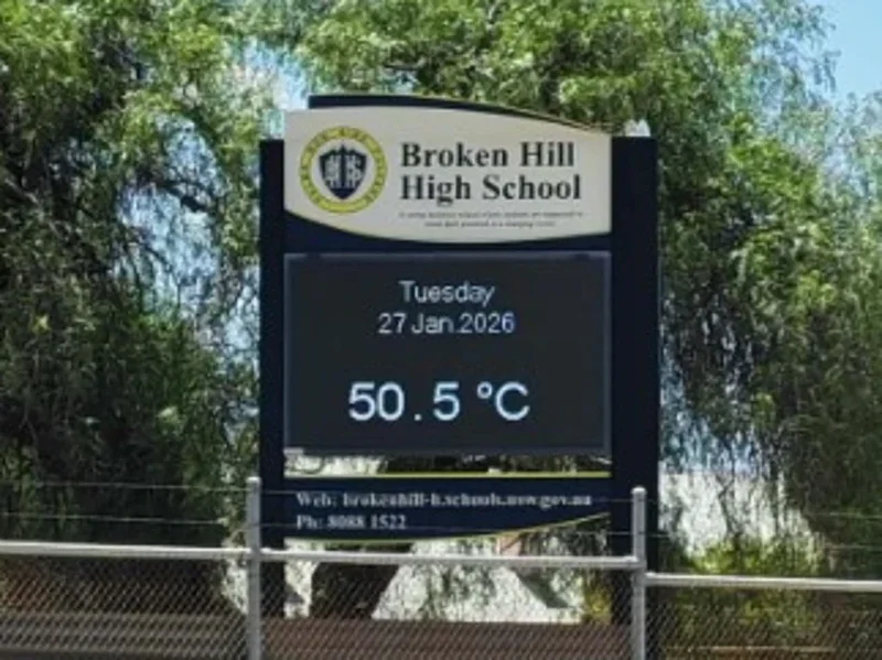 Tibooburra、Wilcannia和Ivanhoe等地的气温预计将飙升至48摄氏度左右,而Broken Hill在周二下午已率先录得50摄氏度的极端高温。