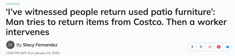 Costco一直以慷慨的退货政策闻名,但以下故事中的这名美国男子似乎未能享受到这一政策。