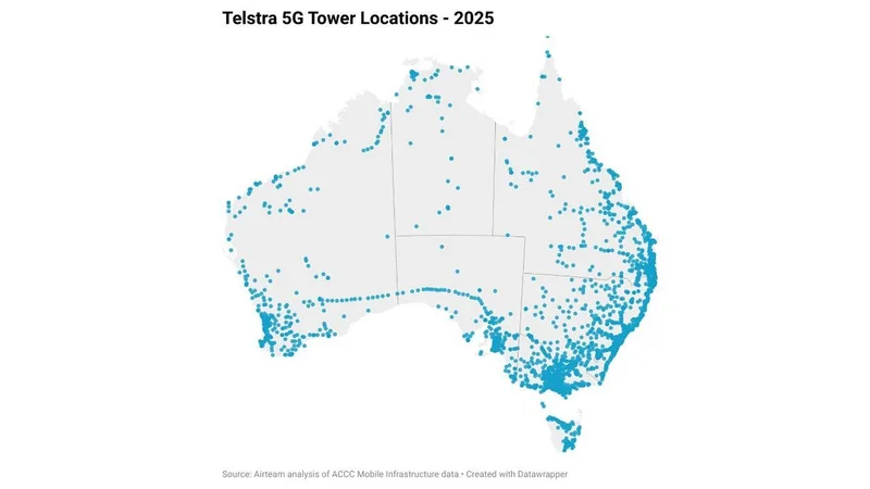 Telstra 5G基站在澳洲的分布。来源:Airteam