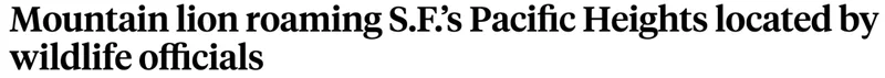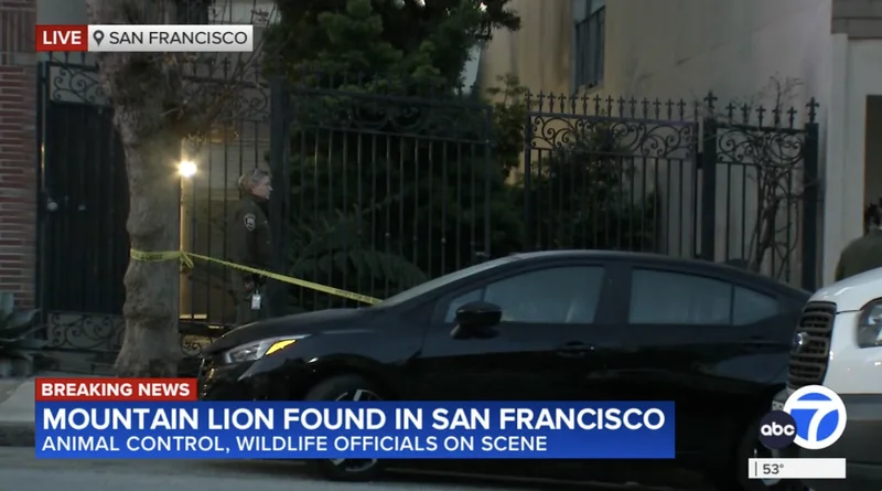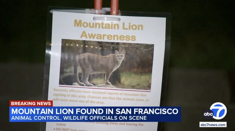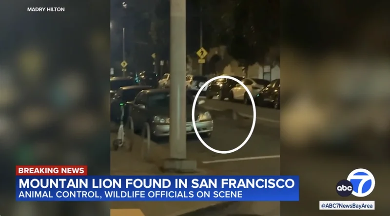 旧金山上市中心并不常见美洲狮,上一次确认的目击事件还要追溯到2021年的Bernal Heights。