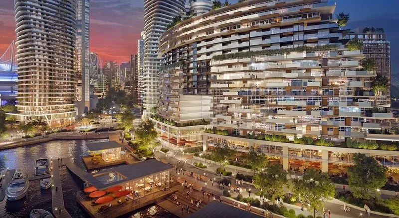 2025年修订版康科德码头(Concord Landing)东北福溪(Northeast False Creek)概念设计。(Civitas Urban Design & Architecture/Concord Pacific)