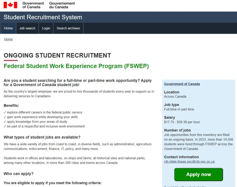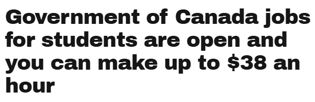 加拿大联邦政府正在面向学生群体进行持续招聘。如果成功被录用,时薪最高可达38加元。