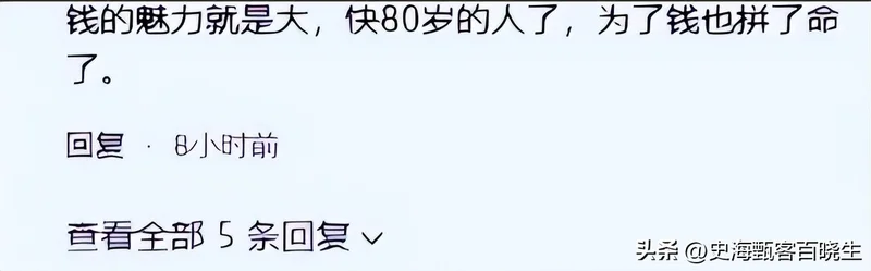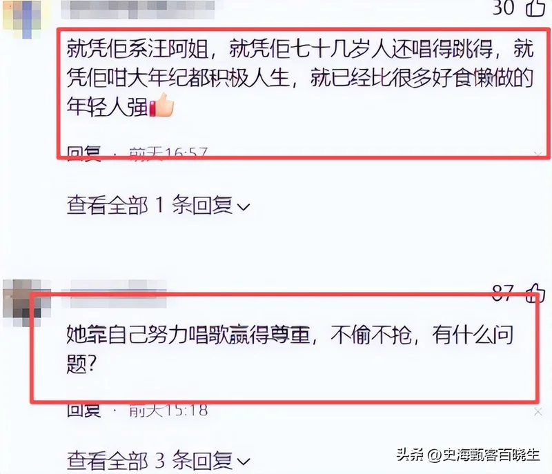 他们觉得,汪明荃这把年纪本该在家安心养老,偏要出来挣这份高强度的辛苦钱,捞金的嘴脸也太难看了。