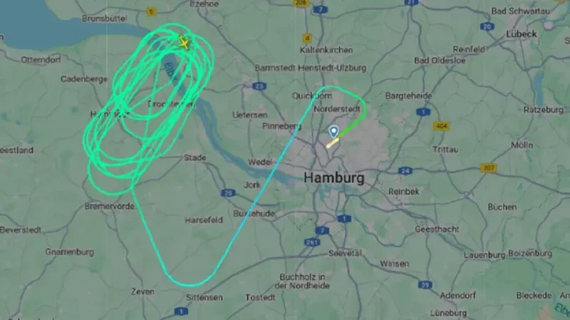 飞行数据显示,飞机在起飞约五分钟后即停止爬升,并开始降低高度。约十分钟后,飞机转向北方,在汉堡以西空域上空盘旋。随后,飞机在约2130米高度持续绕飞,以消耗燃油并为可能的返航着陆做准备。