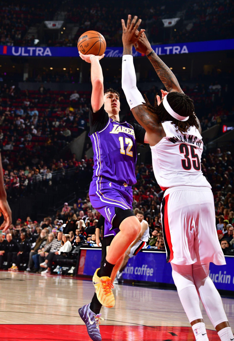 湖人队今天缺兵少将,詹姆斯、东契奇、里夫斯都因伤不能出场。在这种情况下,湖人队首节进攻端受到影响,仅得到24分落后9分。次节比赛中,湖人队加强防守,单节令开拓者队仅得到20分,在上半场结束前追到仅差5分。下半场比赛开始后,湖人队进攻端多点开花,并在末节初段完成反超。随后艾顿等人顶住了开拓者队的反扑,最终在客场取得一场宝贵胜利。