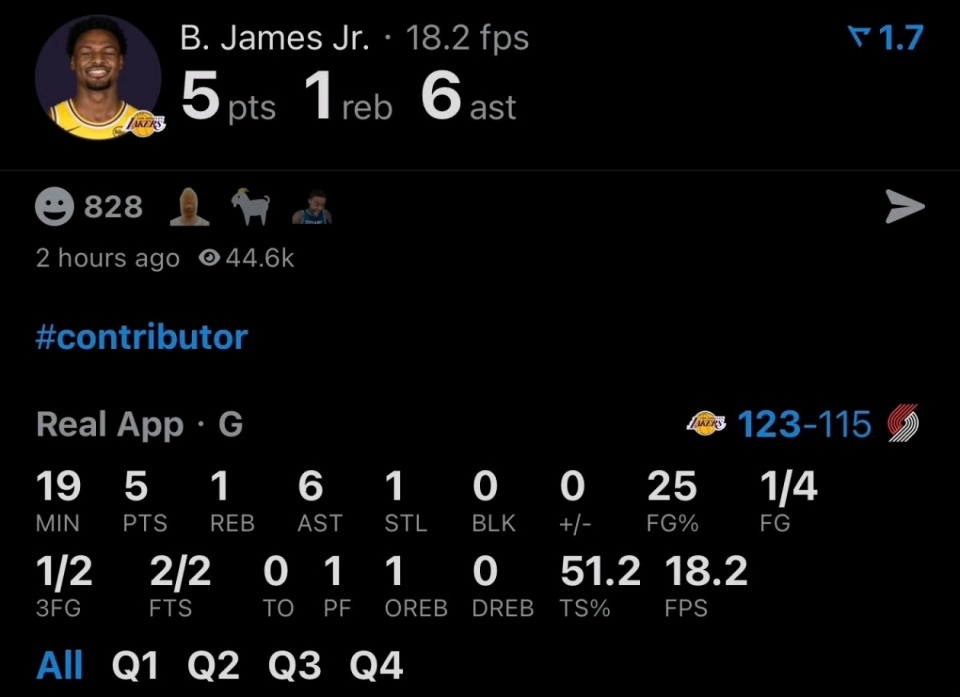 北京时间11月4日,在湖人123-115击败开拓者的比赛中,布朗尼-詹姆斯交出了一份令人眼前一亮的数据单:4投1中得到5分,送出了6次助攻且0失误,同时贡献了1篮板1抢断。虽然投篮手感一般,但他在组织和防守端的表现堪称出色。这个被认为靠老爸的年轻人,正用实际表现赢得尊重。